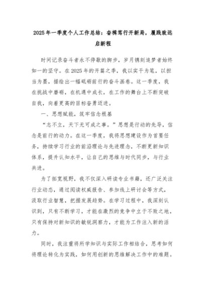 【七哥公文】2025年:2025年一季度个人工作总结:奋楫笃行开新局,履践致远启新程+更多免费公文+VX:QiGeGongWen2024