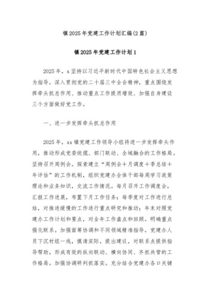 / 【七哥公文】2025年:(2篇)镇2025年党建工作计划汇编+更多免费公文+VX:QiGeGongWen2024