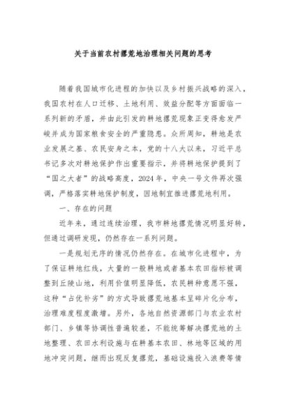/ 【七哥公文】2025年:关于当前农村撂荒地治理相关问题的思考+更多免费公文+VX:QiGeGongWen2024