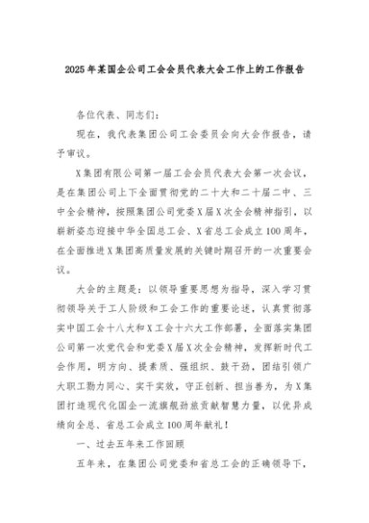 【七哥公文】2025年:2025年某国企公司工会会员代表大会工作上的工作报告+更多免费公文+VX:QiGeGongWen2024