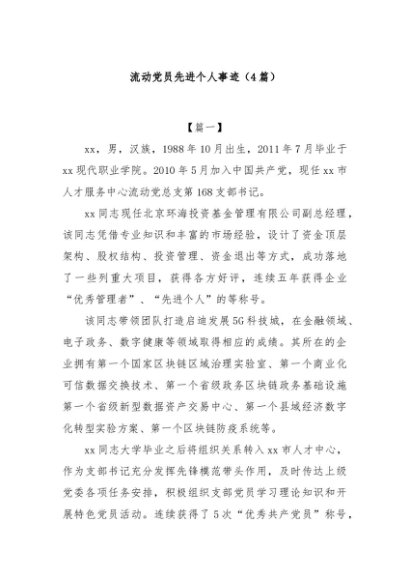 / 【七哥公文】2025年:(4篇)流动党员先进个人事迹+更多免费公文+VX:QiGeGongWen2024