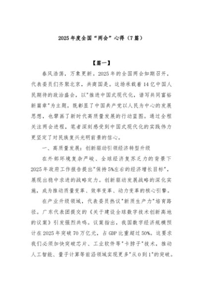/ 【七哥公文】2025年:(7篇)2025年度全国“两会”心得+更多免费公文+VX:QiGeGongWen2024