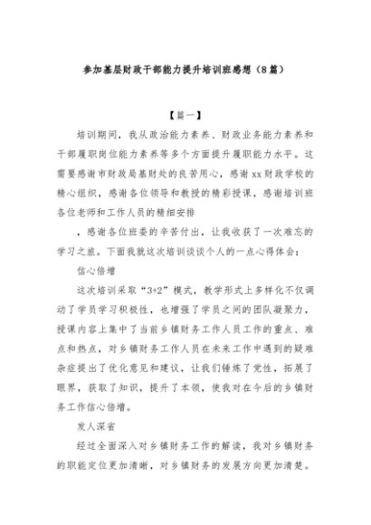 / 【七哥公文】2025年:(8篇)参加基层财政干部能力提升培训班感想+更多免费公文+VX:QiGeGongWen2024