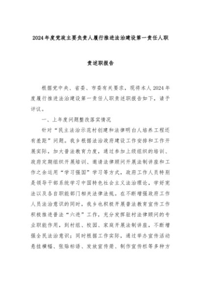 【七哥公文】2025年:2024年度党政主要负责人履行推进法治建设第一责任人职责述职报告+更多免费公文+VX:QiGeGongWen2024