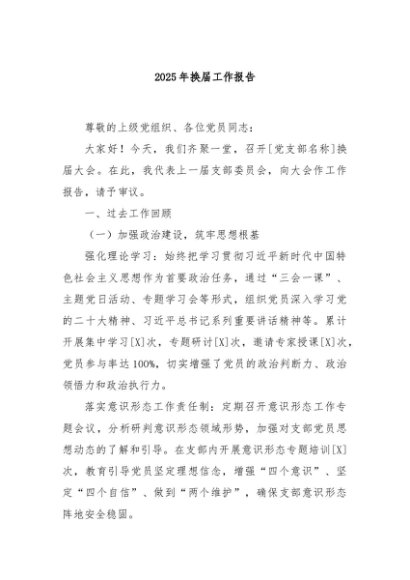 / 【七哥公文】2025年:2025年换届工作报告+更多免费公文+VX:QiGeGongWen2024
