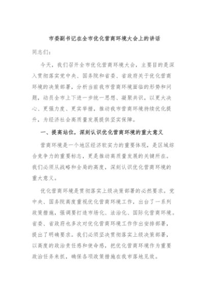 / 【七哥公文】2025年:市委副书记在全市优化营商环境大会上的讲话+更多免费公文+VX:QiGeGongWen2024