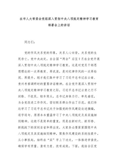 【七哥公文】2025年:在市人大常委会党组深入贯彻中央八项规定精神学习教育部署会上的讲话+更多免费公文+VX:QiGeGongWen2024