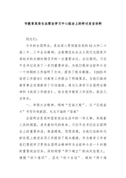 / 【七哥公文】2025年:市教育局局长在理论学习中心组会上的研讨发言材料+更多免费公文+VX:QiGeGongWen2024