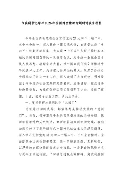 【七哥公文】2025年:市委副书记学习2025年全国两会精神专题研讨发言材料+更多免费公文+VX:QiGeGongWen2024