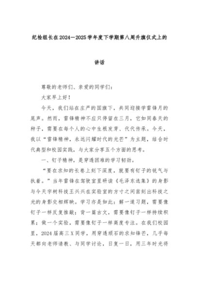 【七哥公文】2025年:纪检组长在2024-2025学年度下学期第八周升旗仪式上的讲话+更多免费公文+VX:QiGeGongWen2024