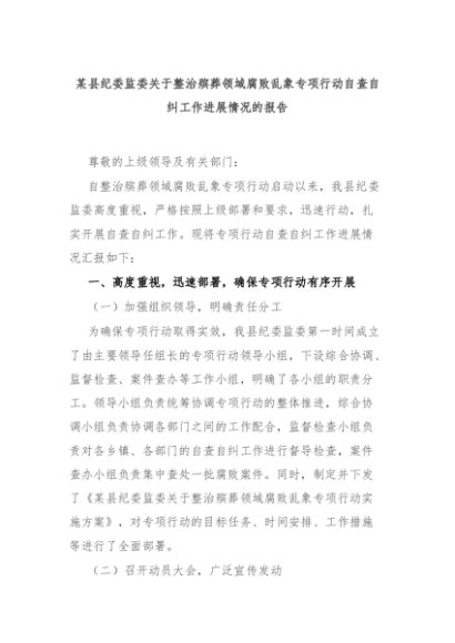 【七哥公文】2025年:某县纪委监委关于整治殡葬领域腐败乱象专项行动自查自纠工作进展情况的报告+更多免费公文+VX:QiGeGongWen2024