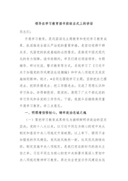 / 【七哥公文】2025年:领导在学习教育读书班结业式上的讲话+更多免费公文+VX:QiGeGongWen2024