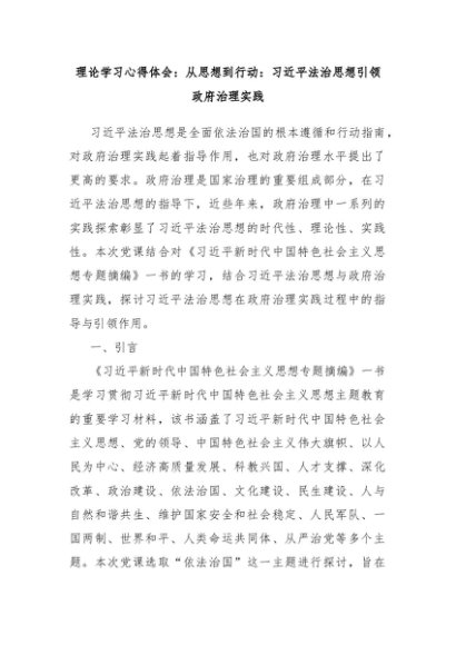 【七哥公文】2025年:理论学习心得体会:从思想到行动:习近平法治思想引领政府治理实践+更多免费公文+VX:QiGeGongWen2024