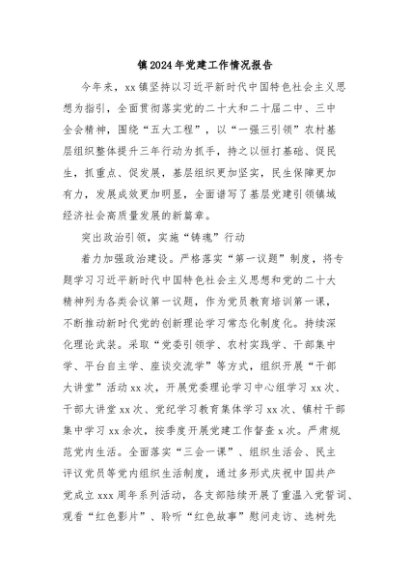 / 【七哥公文】2025年:镇2024年党建工作情况报告+更多免费公文+VX:QiGeGongWen2024