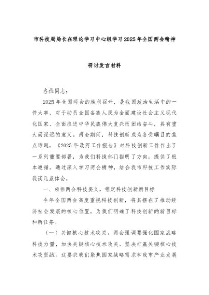 【七哥公文】2025年:市科技局局长在理论学习中心组学习2025年全国两会精神研讨发言材料+更多免费公文+VX:QiGeGongWen2024