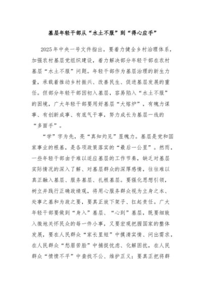 / 【七哥公文】2025年:基层年轻干部从“水土不服”到“得心应手”+更多免费公文+VX:QiGeGongWen2024