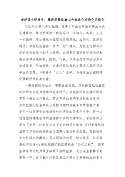 【七哥公文】2025年:市纪委书记发言:推进纪检监察工作规范化法治化正规化+更多免费公文+VX:QiGeGongWen2024