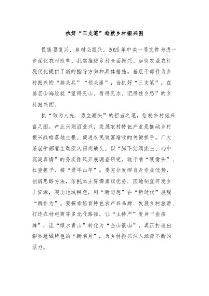 / 【七哥公文】2025年:执好“三支笔”绘就乡村振兴图+更多免费公文+VX:QiGeGongWen2024