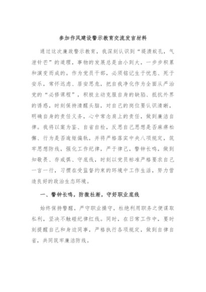 【七哥公文】2025年:参加作风建设警示教育交流发言材料+更多免费公文+VX:QiGeGongWen2024