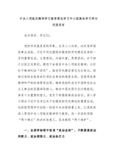【七哥公文】2025年:中央八项规定精神学习教育理论学习中心组集体学习研讨交流发言+更多免费公文+VX:QiGeGongWen2024