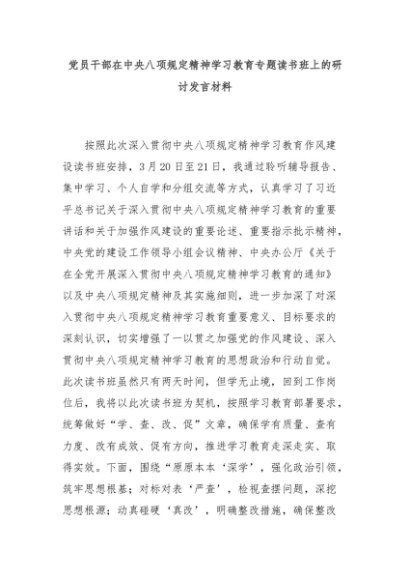 【七哥公文】2025年:党员干部在中央八项规定精神学习教育专题读书班上的研讨发言材料+更多免费公文+VX:QiGeGongWen2024