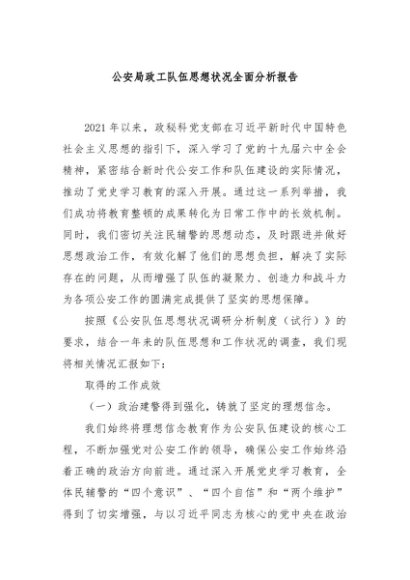【七哥公文】2025年:公安局政工队伍思想状况全面分析报告+更多免费公文+VX:QiGeGongWen2024