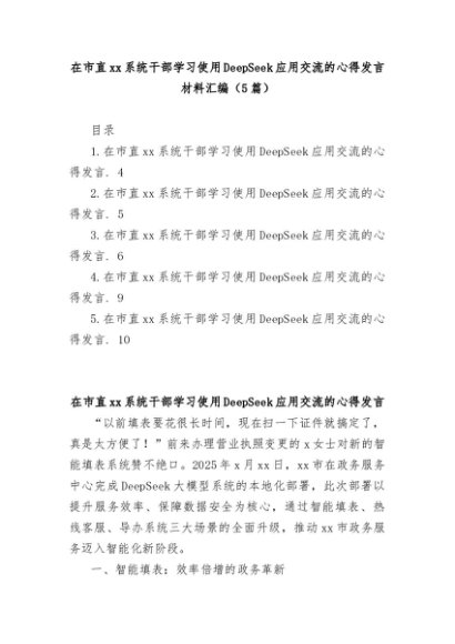 【七哥公文】2025年:(5篇)在市直系统干部学习使用DeepSeek应用交流的心得发言材料汇编+更多免费公文+VX:QiGeGongWen2024