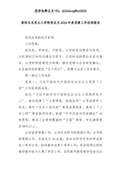 【七哥公文】2025年:高校马克思主义学院党总支2024年度党建工作述职报告+更多免费公文+VX:QiGeGongWen2024+更多免费公文+VX:QiGeGongWen2024