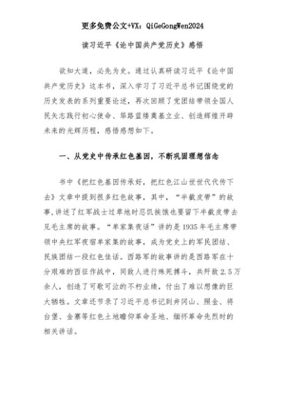 【七哥公文】2025年:读习近平《论中国共产党历史》感悟+更多免费公文+VX:QiGeGongWen2024+更多免费公文+VX:QiGeGongWen2024