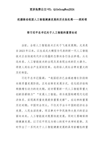 【七哥公文】2025年:把握推动我国人工智能健康发展的历史性机遇——深刻领悟习近平总书记关于人工智能的重要论述+更多免费公文+VX:QiGeGongWen2024+更多免费公文+VX:QiGeGongWen2024