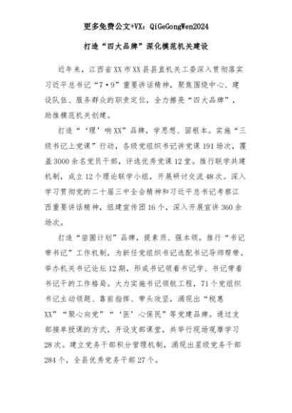 【七哥公文】2025年:打造“四大品牌”深化模范机关建设+更多免费公文+VX:QiGeGongWen2024+更多免费公文+VX:QiGeGongWen2024