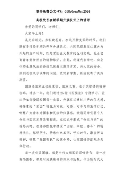 【七哥公文】2025年:高校校长在新学期升旗仪式上的讲话+更多免费公文+VX:QiGeGongWen2024+更多免费公文+VX:QiGeGongWen2024