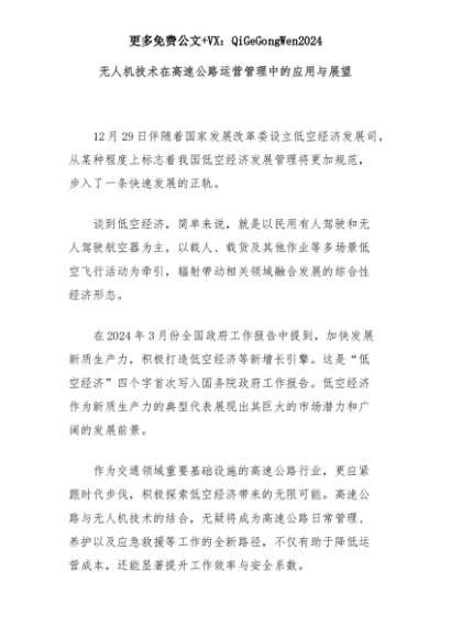 【七哥公文】2025年:无人机技术在高速公路运营管理中的应用与展望+更多免费公文+VX:QiGeGongWen2024+更多免费公文+VX:QiGeGongWen2024