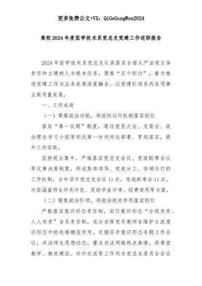 【七哥公文】2025年:高校2024年度医学技术系党总支党建工作述职报告+更多免费公文+VX:QiGeGongWen2024+更多免费公文+VX:QiGeGongWen2024