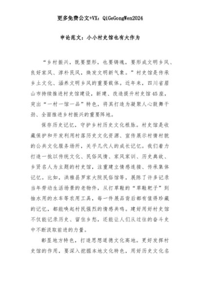 【七哥公文】2025年:申论范文:小小村史馆也有大作为+更多免费公文+VX:QiGeGongWen2024+更多免费公文+VX:QiGeGongWen2024