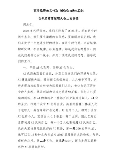 【七哥公文】2025年:在年度高管述职大会上的讲话+更多免费公文+VX:QiGeGongWen2024+更多免费公文+VX:QiGeGongWen2024