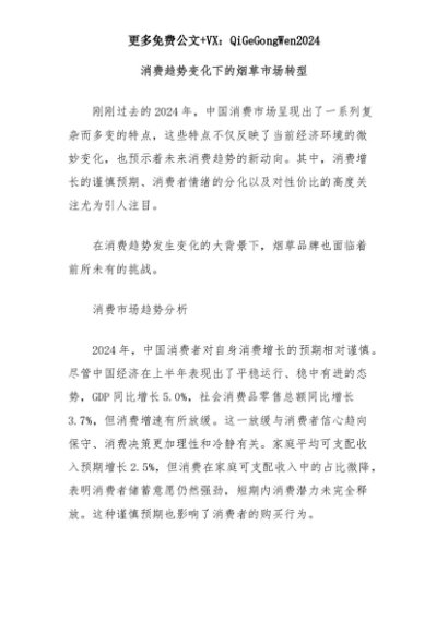 【七哥公文】2025年:消费趋势变化下的烟草市场转型+更多免费公文+VX:QiGeGongWen2024+更多免费公文+VX:QiGeGongWen2024