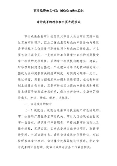 【七哥公文】2025年:审计成果的特征和主要表现形式+更多免费公文+VX:QiGeGongWen2024+更多免费公文+VX:QiGeGongWen2024