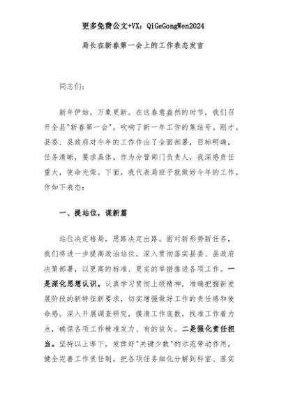 【七哥公文】2025年:局长在新春第一会上的工作表态发言+更多免费公文+VX:QiGeGongWen2024+更多免费公文+VX:QiGeGongWen2024