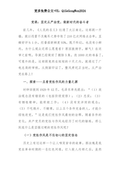 【七哥公文】2025年:党课:坚定从严治党,做新时代的奋斗者+更多免费公文+VX:QiGeGongWen2024+更多免费公文+VX:QiGeGongWen2024