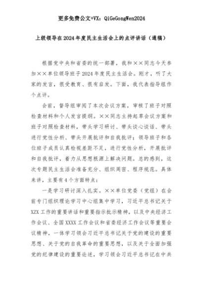 【七哥公文】2025年:上级领导在2024年度民主生活会上的点评讲话(通稿)+更多免费公文+VX:QiGeGongWen2024+更多免费公文+VX:QiGeGongWen2024