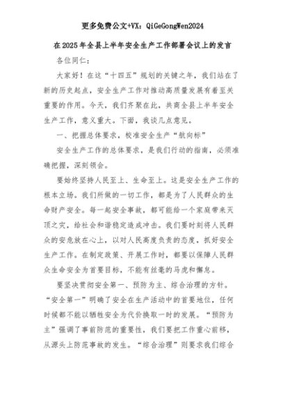 【七哥公文】2025年:在2025年全县上半年安全生产工作部署会议上的发言+更多免费公文+VX:QiGeGongWen2024+更多免费公文+VX:QiGeGongWen2024