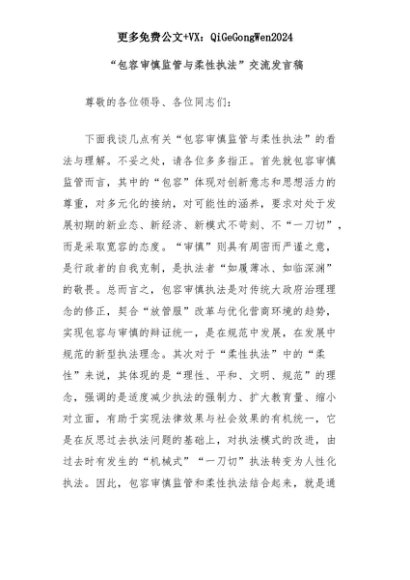 【七哥公文】2025年:包容审慎监管与柔性执法”交流发言稿+更多免费公文+VX:QiGeGongWen2024+更多免费公文+VX:QiGeGongWen2024