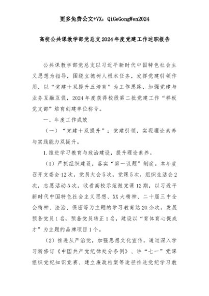【七哥公文】2025年:高校公共课教学部党总支2024年度党建工作述职报告+更多免费公文+VX:QiGeGongWen2024+更多免费公文+VX:QiGeGongWen2024