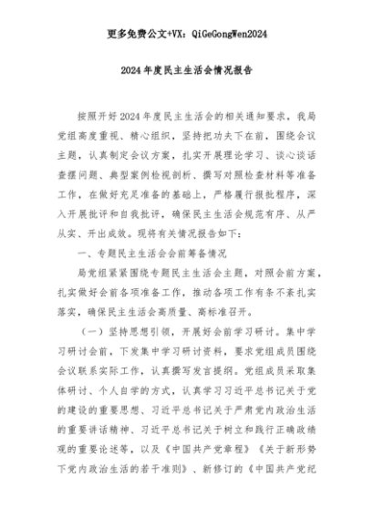 【七哥公文】2025年:2024年度民主生活会情况报告+更多免费公文+VX:QiGeGongWen2024+更多免费公文+VX:QiGeGongWen2024