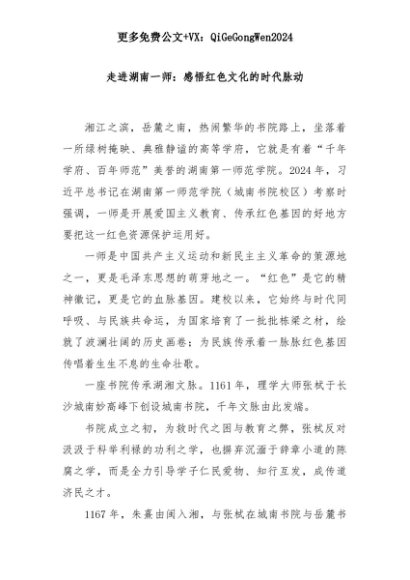 【七哥公文】2025年:走进湖南一师:感悟红色文化的时代脉动+更多免费公文+VX:QiGeGongWen2024+更多免费公文+VX:QiGeGongWen2024