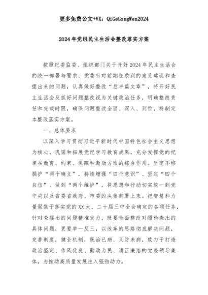 【七哥公文】2025年:2024年党组民主生活会整改落实方案+更多免费公文+VX:QiGeGongWen2024+更多免费公文+VX:QiGeGongWen2024