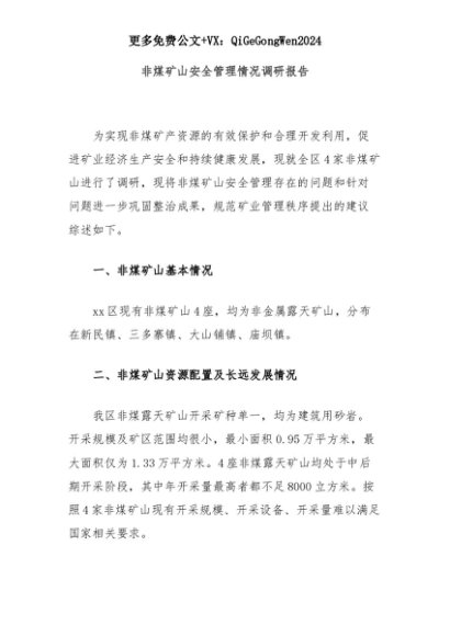 【七哥公文】2025年:非煤矿山安全管理情况调研报告+更多免费公文+VX:QiGeGongWen2024+更多免费公文+VX:QiGeGongWen2024