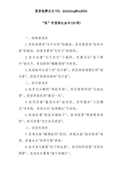 【七哥公文】2025年:(30例)“抓”字型排比金句+更多免费公文+VX:QiGeGongWen2024+更多免费公文+VX:QiGeGongWen2024
