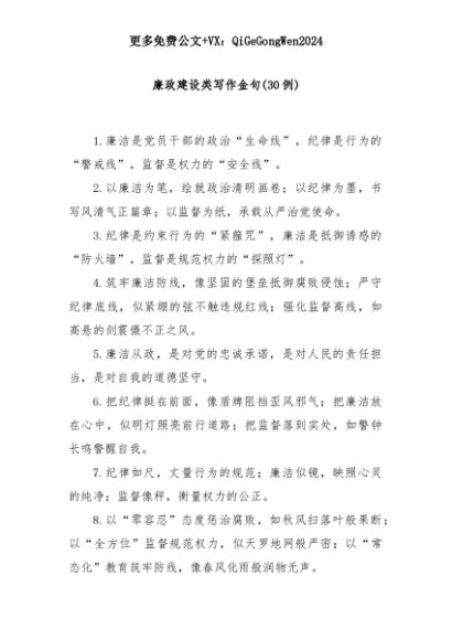 【七哥公文】2025年:(30例)廉政建设类写作金句+更多免费公文+VX:QiGeGongWen2024+更多免费公文+VX:QiGeGongWen2024